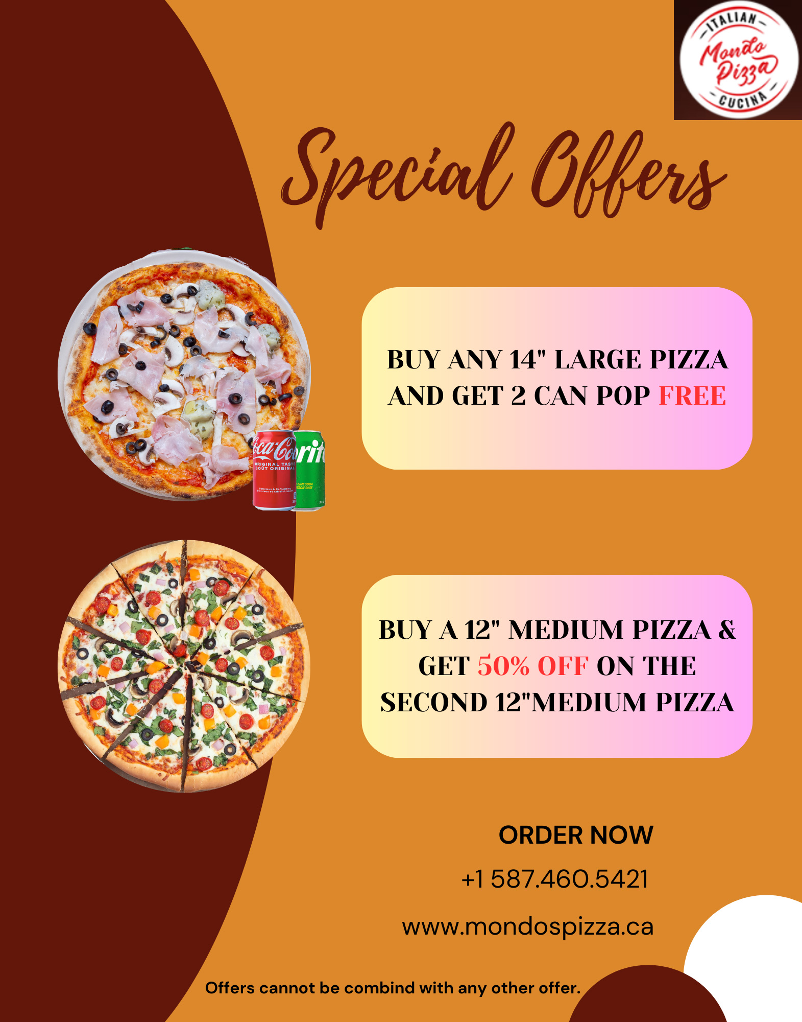 Mondo Special [A 14" Pizza, Garlic Bread, 1 Tiramisu (eggless) & 2 CAN POP] |