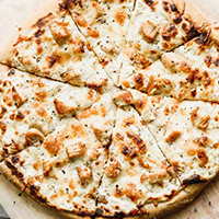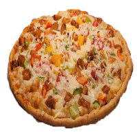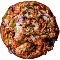 Chicken PizzaMOZZARELLA CHEESE, Tomato Sauce, Chicken, Onions, & Green pepper |