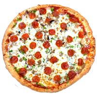 DELUXETOMATO SAUCE, MOZZARELLA CHEESE, PEPPERONI, ITALIAN SAUSAGE, MUSHROOM,ONIONS, GREEN PEPPERS |