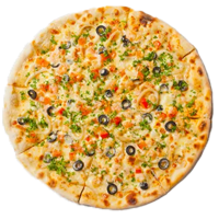 VEGETARIAN PizzaTOMATO SAUCE, MOZZARELLA CHEESE, GREEN PEPPERS, ONIONS, MUSHROOM,OLIVES, TOMATOES |
