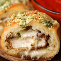 Chicken Garlic Cheesy BreadGARLIC BUTTER, OVEN BAKED CHICKEN PIECES, AND MOZZARELLA CHEESE ON THE TOP SERVED WITH MARINARA DIP |