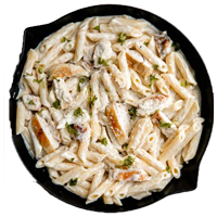 PENNE CHICKENPENNE PASTA, CHICKEN BREAST, GARLIC, ALFREDO ITALIAN SAUCE |