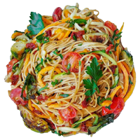Veggie PastaMarinara sauce, onion, green onion, sweet corn, black olive. |