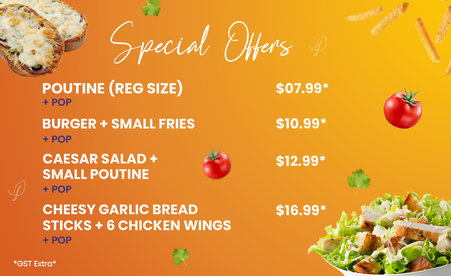 Two 14" Large Pizzas, 10 Chicken Wings, 2 Dips & 1 POP (2 Ltr) |